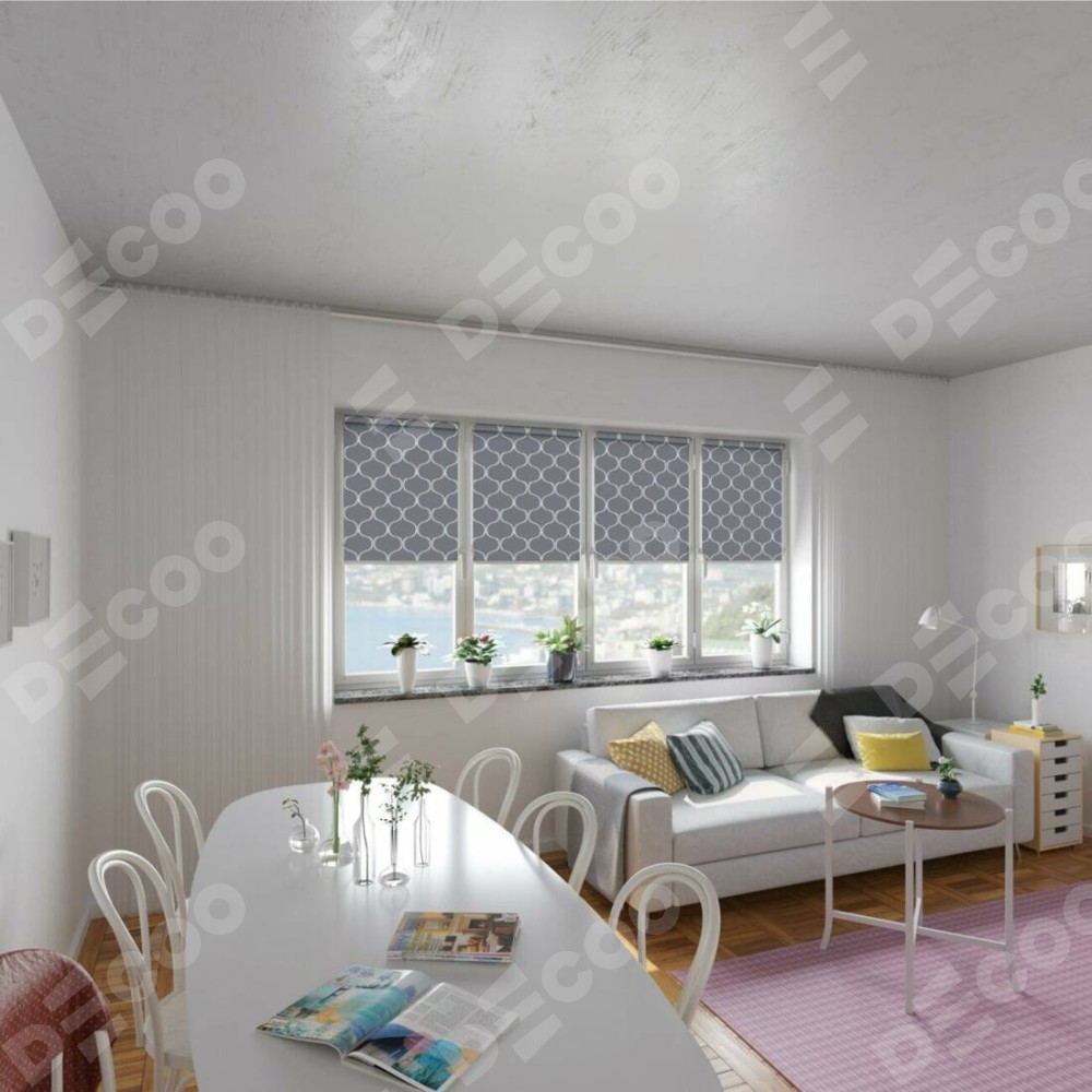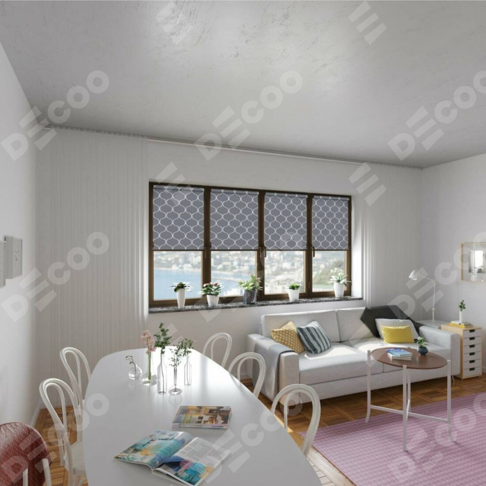 Рулонная штора Мини Касабланка 08 отлично подойдёт для интерьера: для беседки, кабинет и детская.