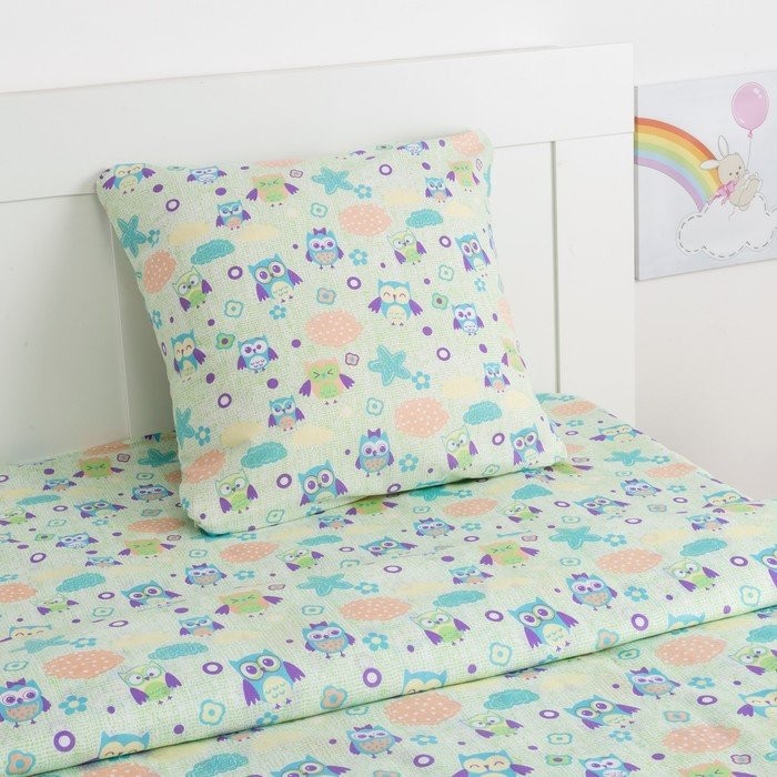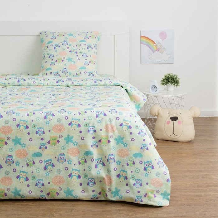 Детское постельное бельё Экономь и Я «Сова» 1.5сп, цвет зелёный, 147×210±5см, 150×214±5см, 70×70±5см — 1шт
