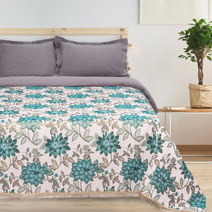 Покрывало гобеленовое Этель «Роскошь» с бахромой, бирюзовый, 140х200см, п/э 80%, хл 20% (450 г/м2)