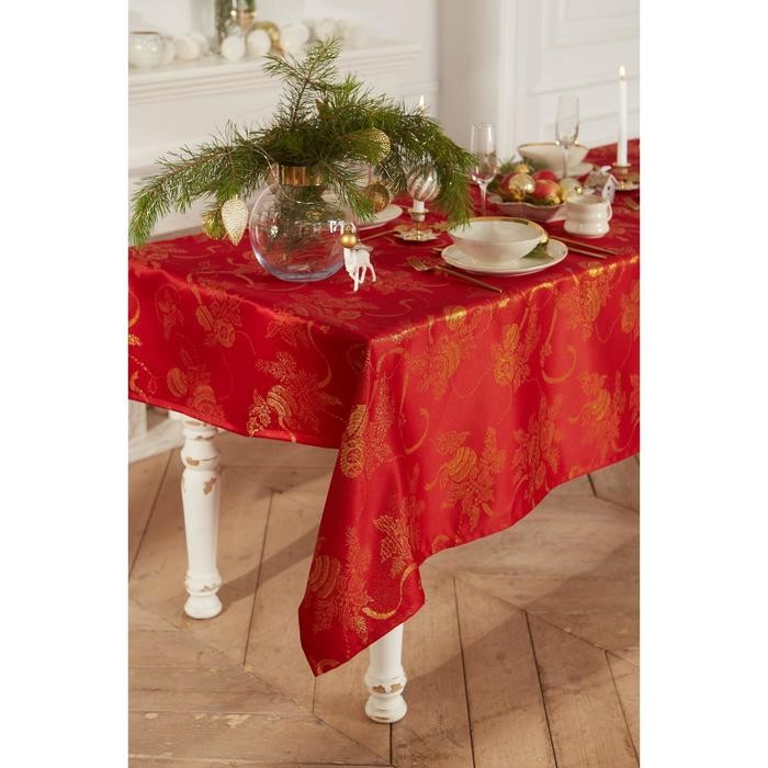 Скатерть Этель «Счастливый Новый год» красный, 110*150 см, 115 ±10 гр,100% п/э