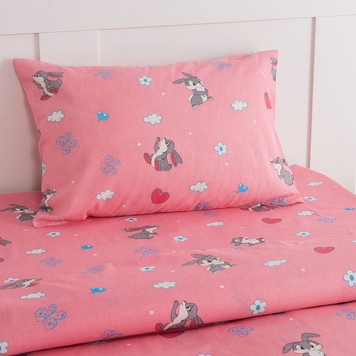 Постельное бельё Экономь и Я 1,5 сп. «Зайки» цвет розовый, 145×210, 150×210, 50×70 см-1 шт, бязь 120 гр/м2