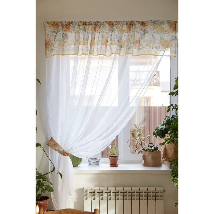 Тюль с подхватом и ламбрекеном «Солнечные цветы» 250х200см, 100% п/э, вуаль