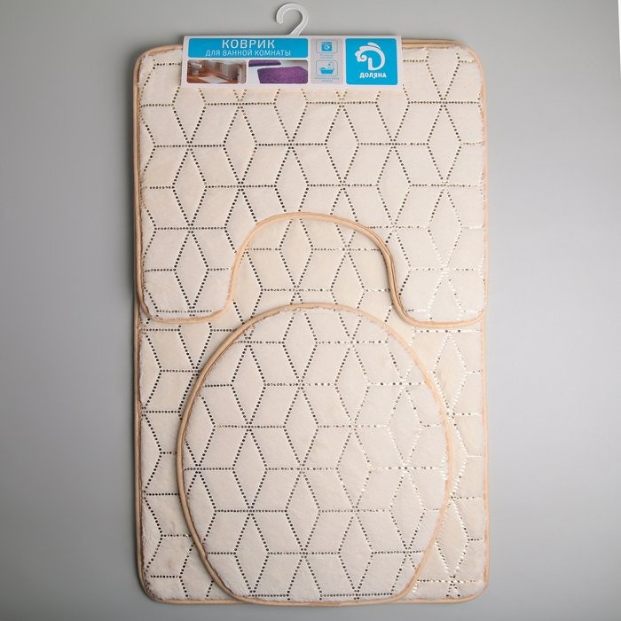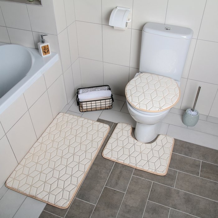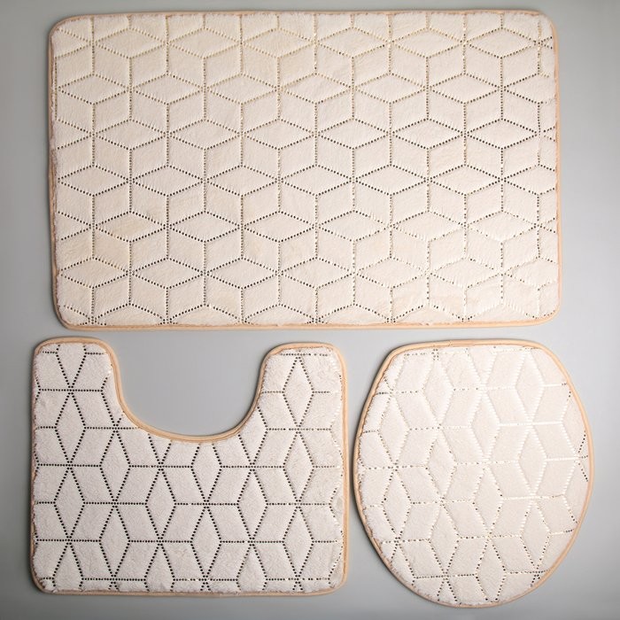 Набор ковриков для ванны и туалета Доляна «Геометрик», 3 шт: 35×40, 40×50, 50×80 см, цвет молочный