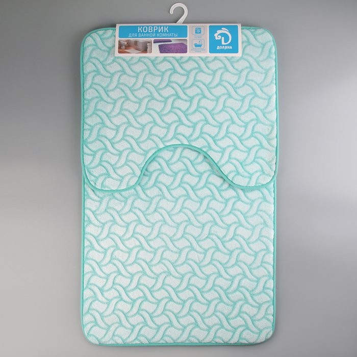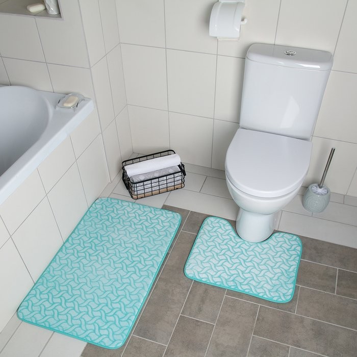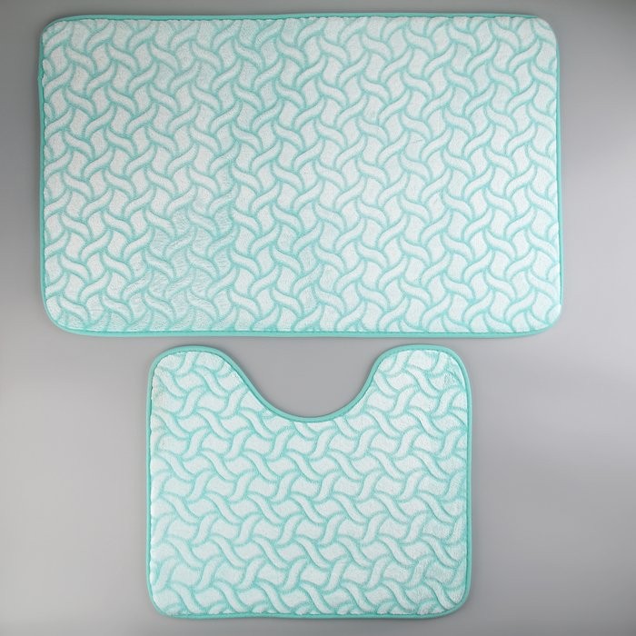Набор ковриков для ванны и туалета Доляна «Винель», 2 шт: 40×50, 50×80 см, цвет бирюзовый
