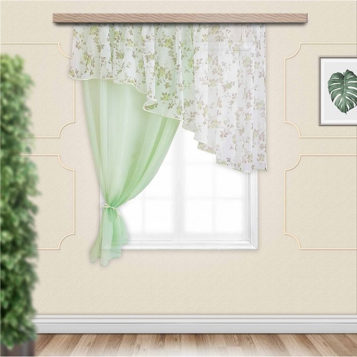 Комплект штор для кухни Византия 280×160 см, цв. св.зеленый левая, пэ 100%