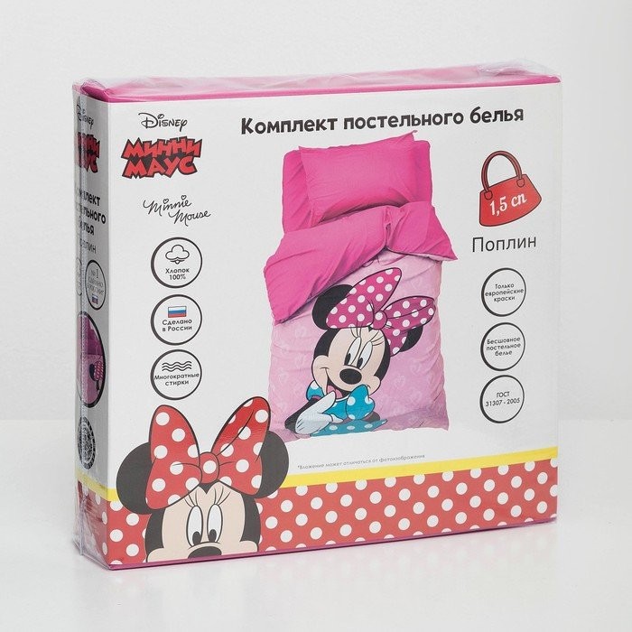 Детское постельное бельё 1,5 сп «Минни Маус» 143×215 см, 150×214 см, 50×70 см -1 шт., поплин 125 г/м2