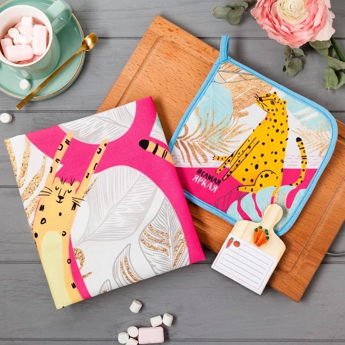 Набор подарочный «8 Марта» полотенце 40х73см, прихватка 19х19см, магнит 11х7см
