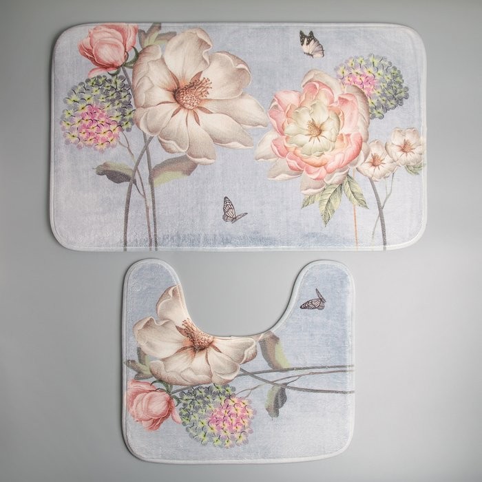 Набор ковриков для ванны и туалета Доляна «Весна», 2 шт: 40×45, 45×75 см