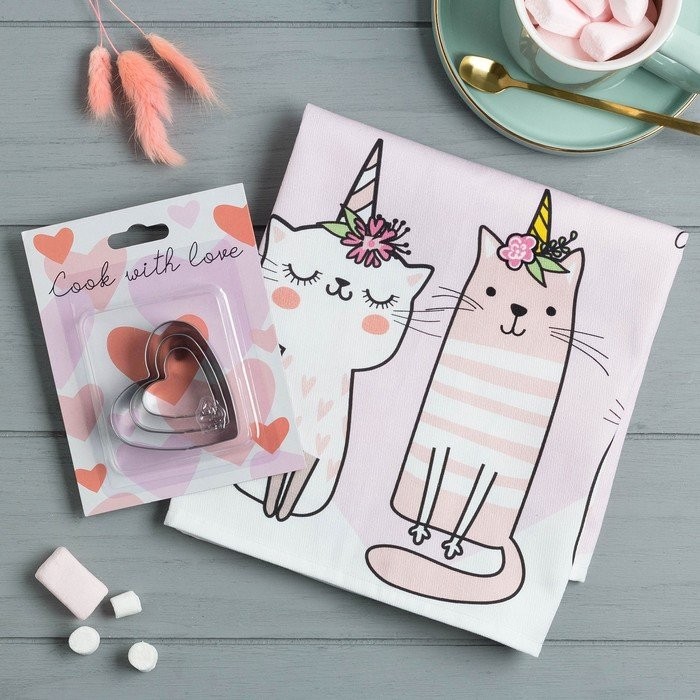 Набор «Love forever» полотенце 40х73см, саржа 190гр/м2, формочки для печенья