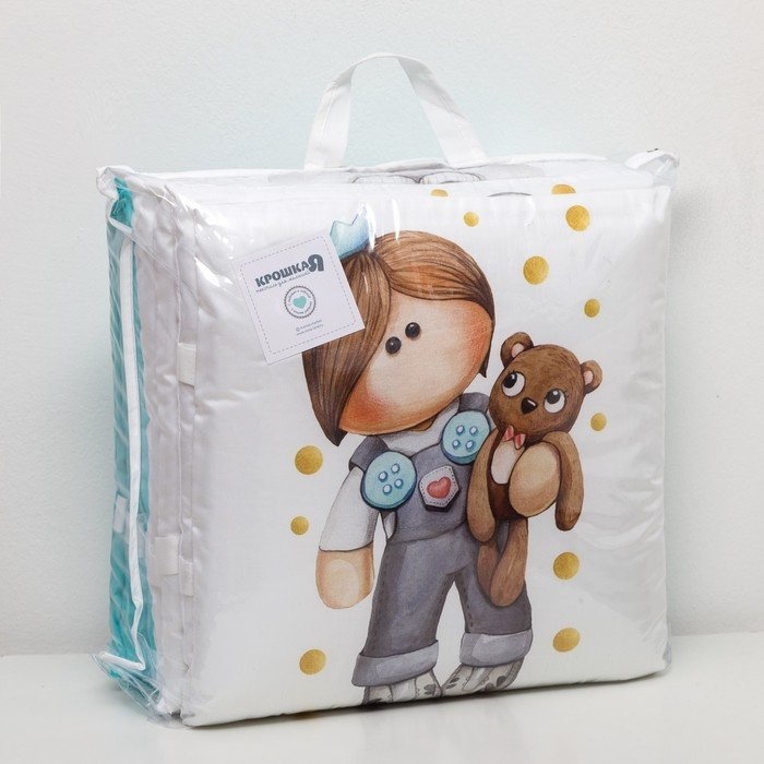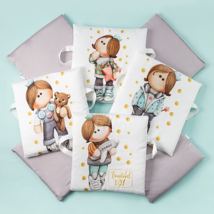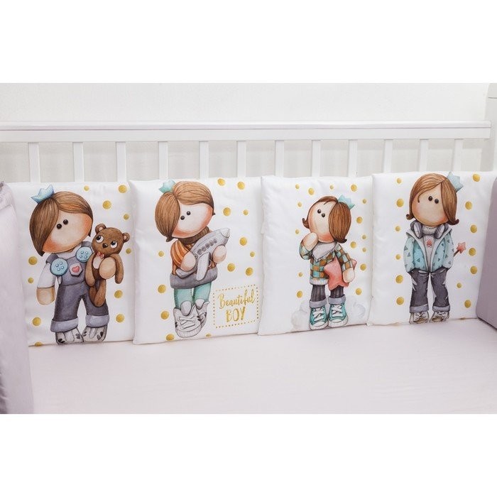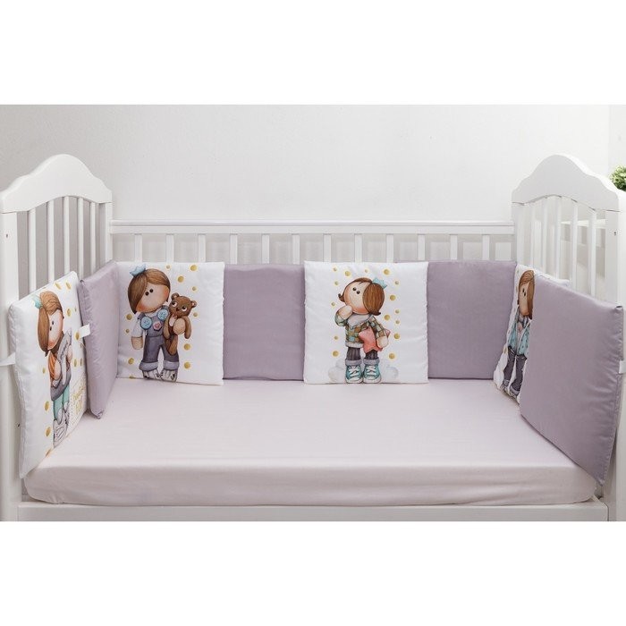 Бортики в кроватку Крошка Я «Принц Тим», цвет белый/серый, 35×35 см-8 шт, сатин