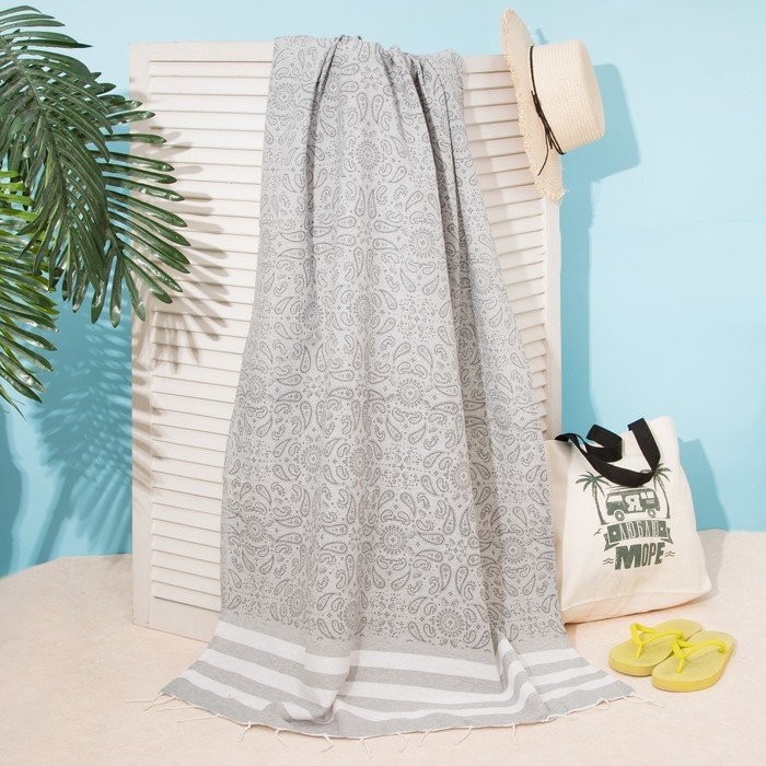 Полотенце для ванны Пештемаль Этель «Персия» 90х170см, 150г/м,80% хл, 20% п/э, серый