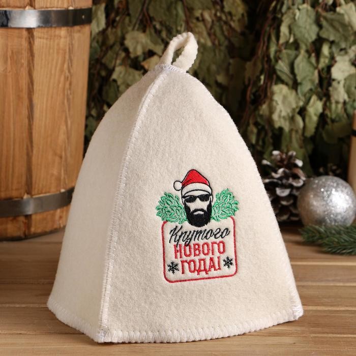 Шапка для бани с вышивкой «Крутого Нового Года!»