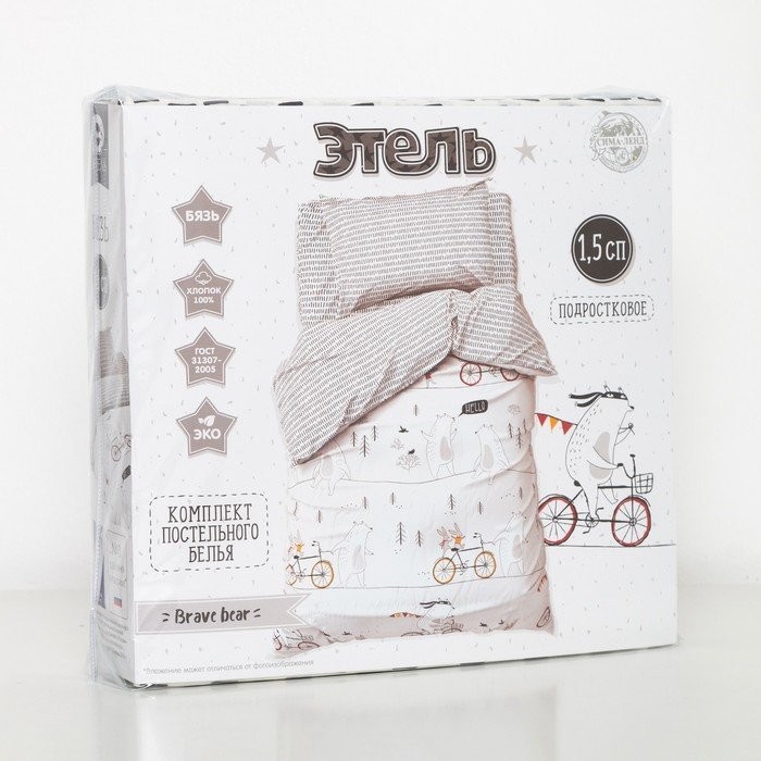 Постельное белье «Этель» 1.5 сп Brave bear 143*215 см, 150*214 см, 50*70 см -1 шт,100% хл, бязь