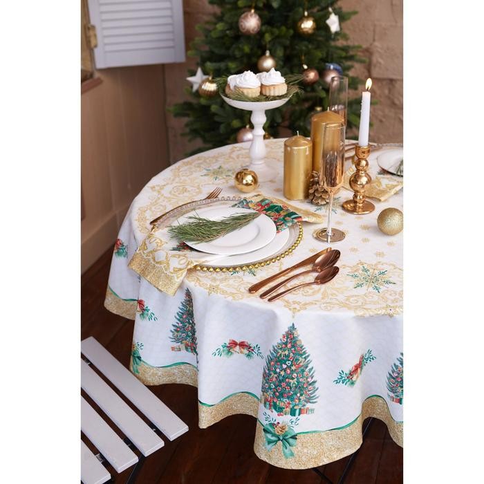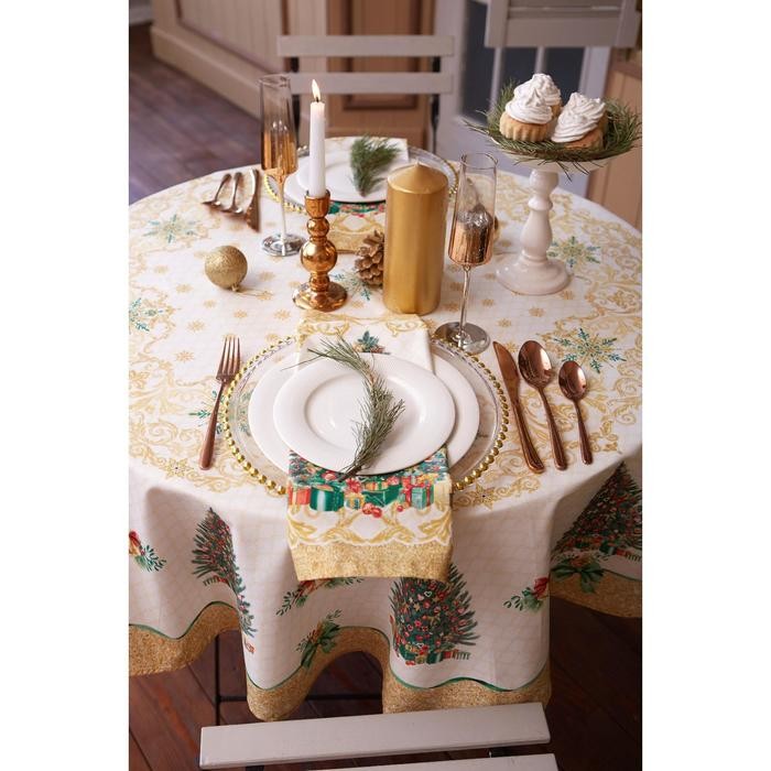 Скатерть «Этель» Golden Christmas d=150 +/- 3см с ГМВО, 100%хл, саржа 190 гр/м2