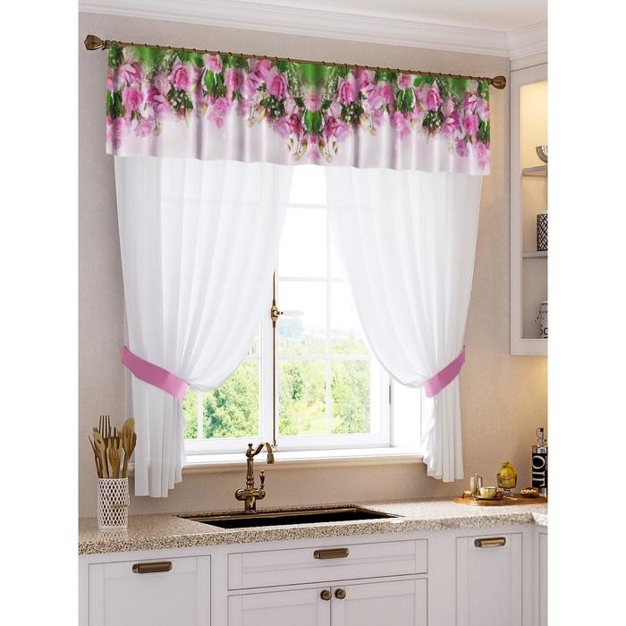 Комплект штор для кухни Наталья тюль (294х160см), ламбрекен (290×40 см), подхваты, пэ 100%