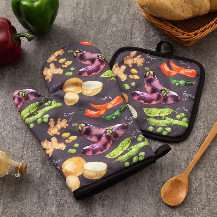Кухонный набор Доляна «Овощи», прихватка 17×17 см, рукавица 26×16 см