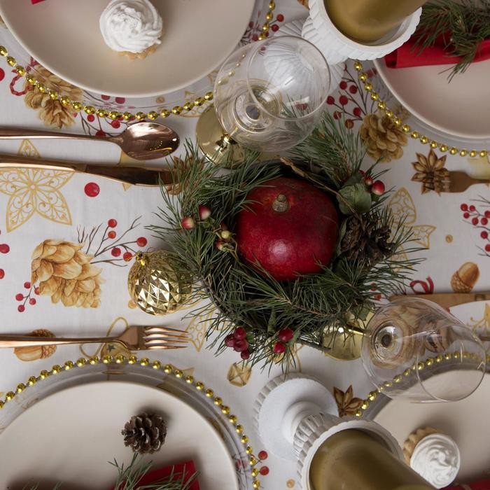 Скатерть «Этель» Golden Christmas 149х250см c ГМВО, 100%хл, 190 г/м2