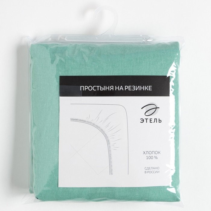 Простыня на резинке Этель 160*200*25 см, цв.зеленый, 100% хлопок, бязь, 125 г/м²