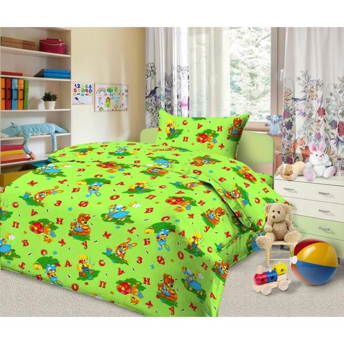 Постельное бельё детское «Алфавит» цвет зелёный, 110×147, 110×150, 40х60см — 1шт