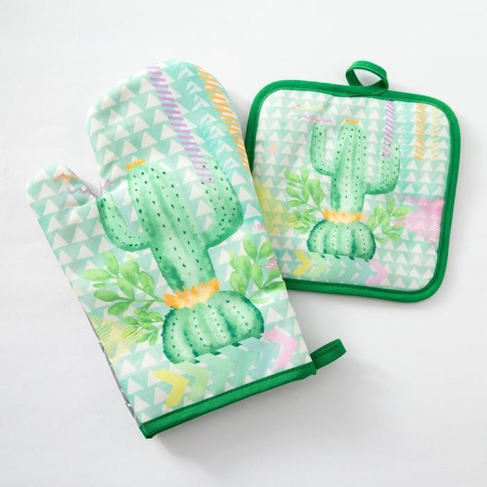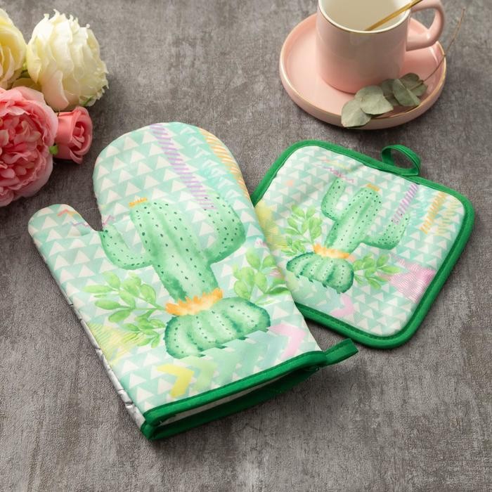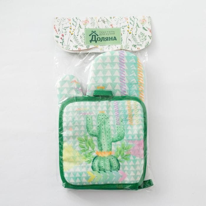 Кухонный набор Доляна «Кактус» прихватка 17×17 см, рукавица 26×16 см
