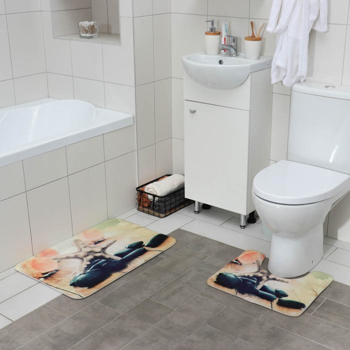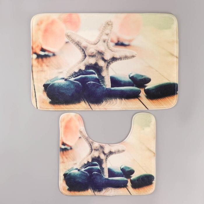Набор ковриков для ванны и туалета «Морская звезда», 2 шт: 45×70, 39×45 см
