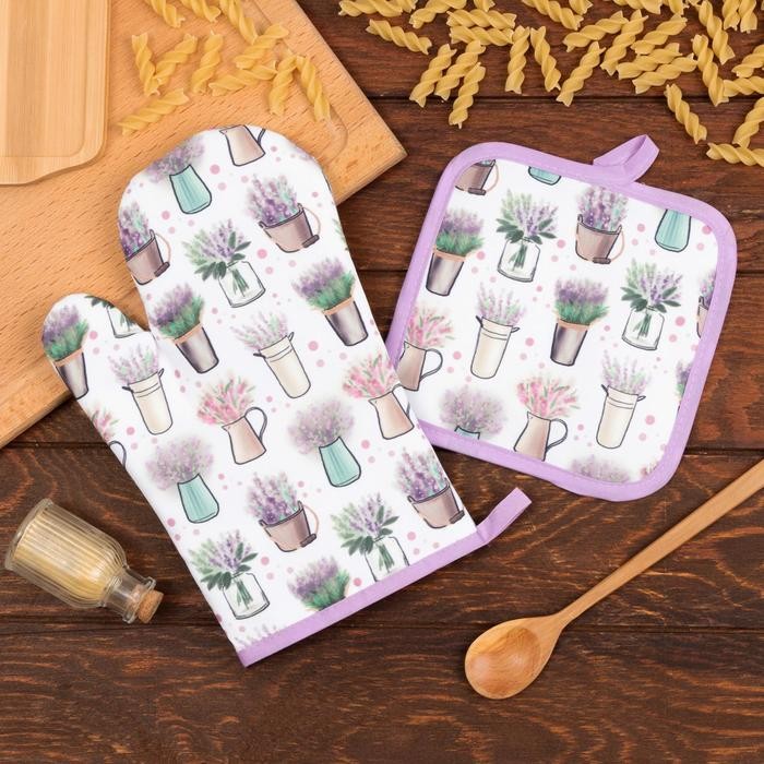 Кухонный набор Доляна «Прованс», прихватка 17*17 см, рукавица 26*16 см,100% п/э