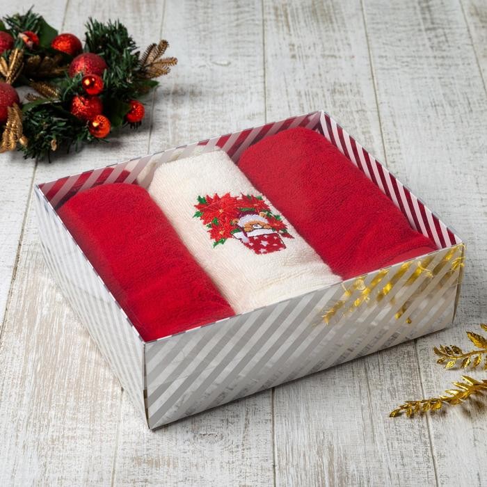 Набор полотенец «Новогодний мишка» 30×60 см- 3 шт