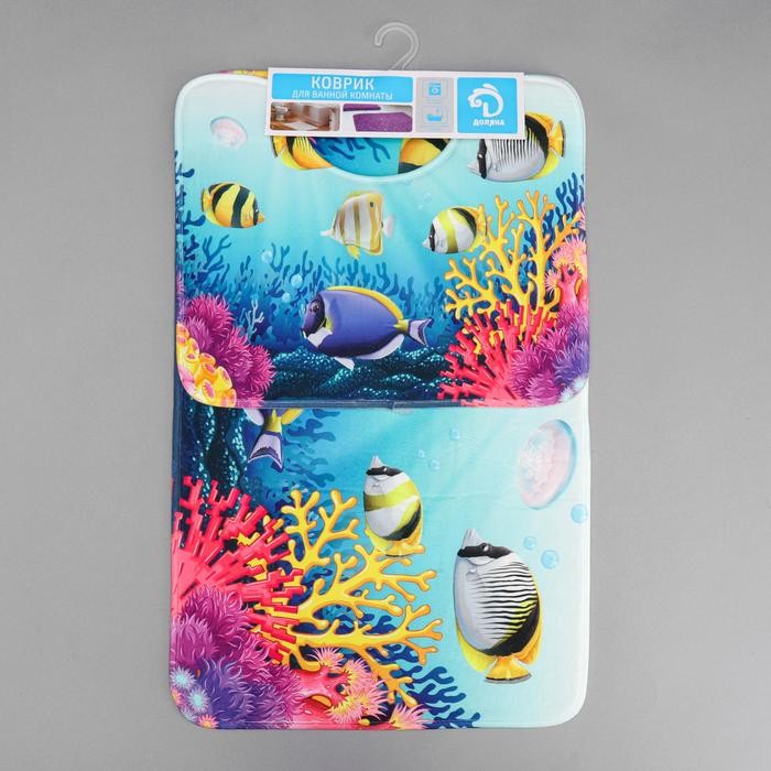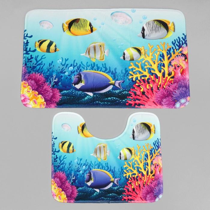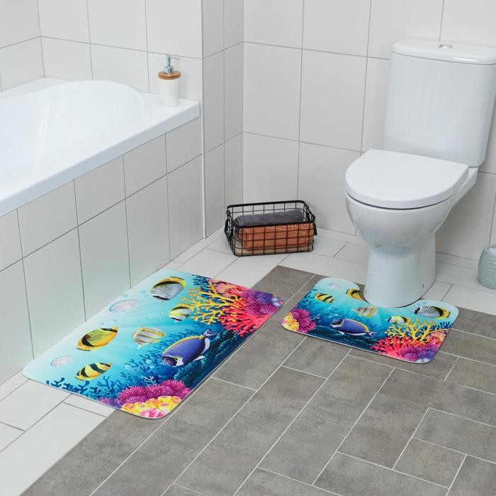 Набор ковриков для ванны и туалета Доляна «Аквариум», 2 шт: 79×50, 50×39 см