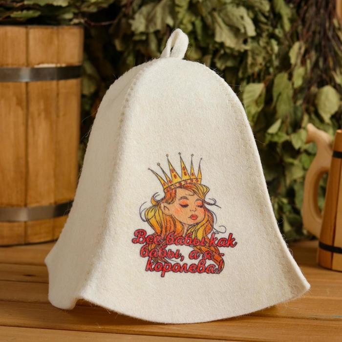 Шапка для бани «Все бабы как бабы, а я Королева» с принтом, белая