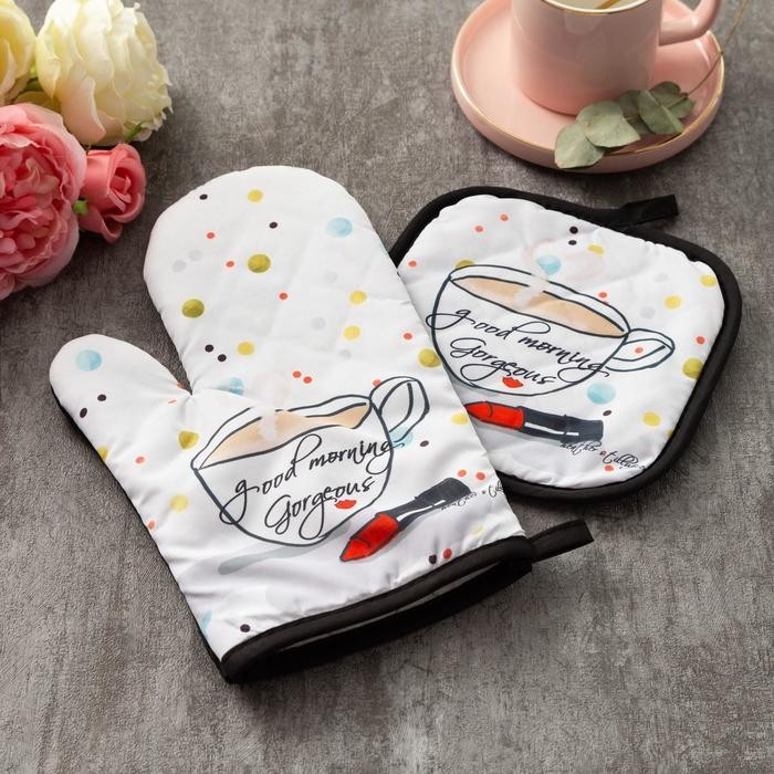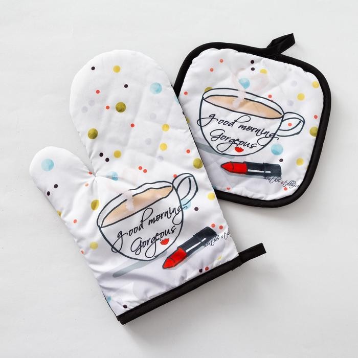 Кухонный набор «Доляна» Good morning, прихватка 17×17 см, рукавица 26×16 см