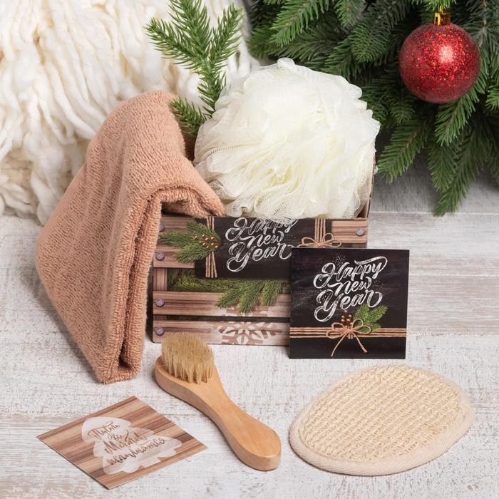 Набор подарочный Этель Happy New year полотенце 30х60см и акс (4 предм)