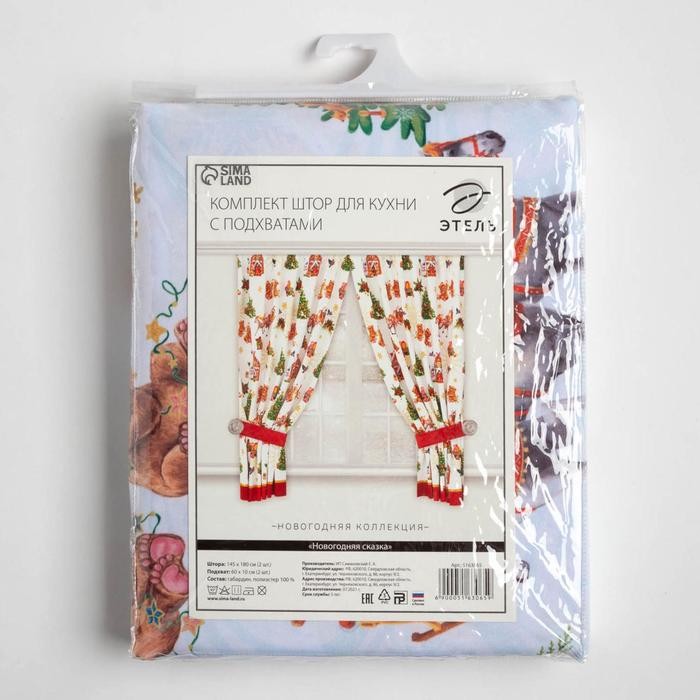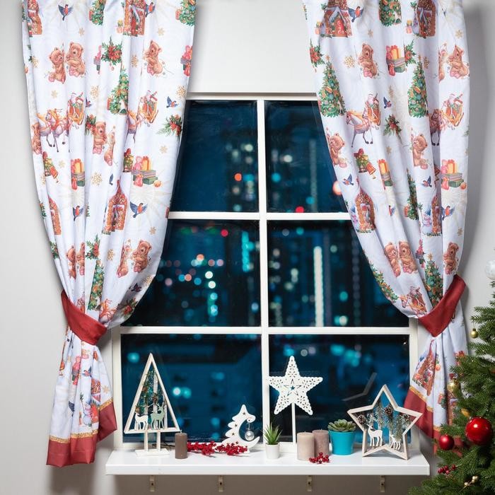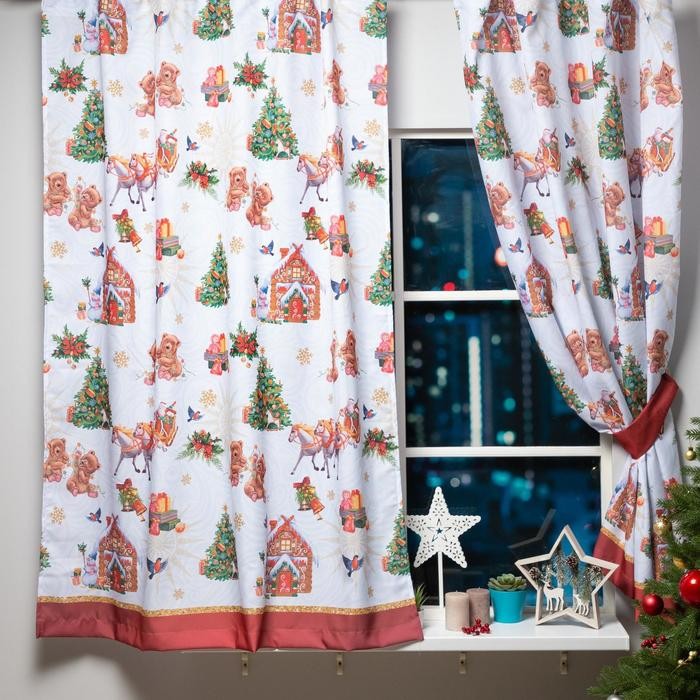 Комплект штор для кухни с подхватами «Новогодняя сказка» 145х180см-2 шт., габардин