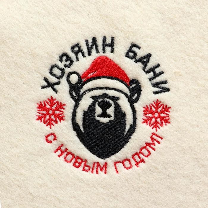 Банный лежак 150×50 с вышивкой «С Новым Годом! Хозяин бани»