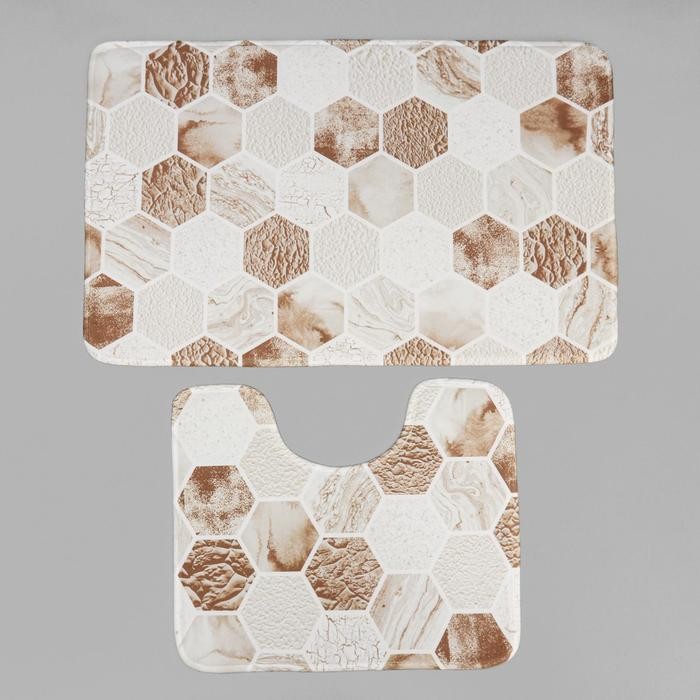 Набор ковриков для ванны и туалета Доляна «Соты», 2 шт: 79×50, 50×39 см, цвет коричнево-бежевый