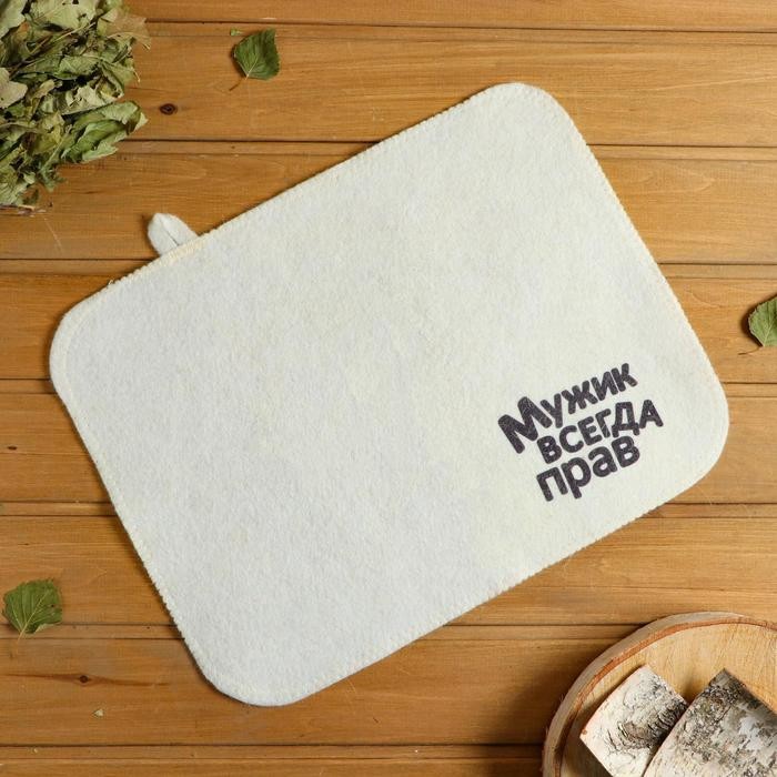 Для комфортного отдыха в парной возьмите с собой набор банных принадлежностей. Предметы из этого комплекта предохраняют тело от перегрева и являются средствами индивидуального пользования. Влажные изделия рекомендуется сушить в расправленном виде на горизонтальной поверхности. Принадлежности из войлока и фетра стирайте вручную при температуре воды 30 °C.