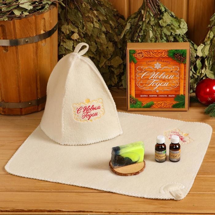 Банный набор «С новым годом» шапка, коврик, 2 масла, мыло
