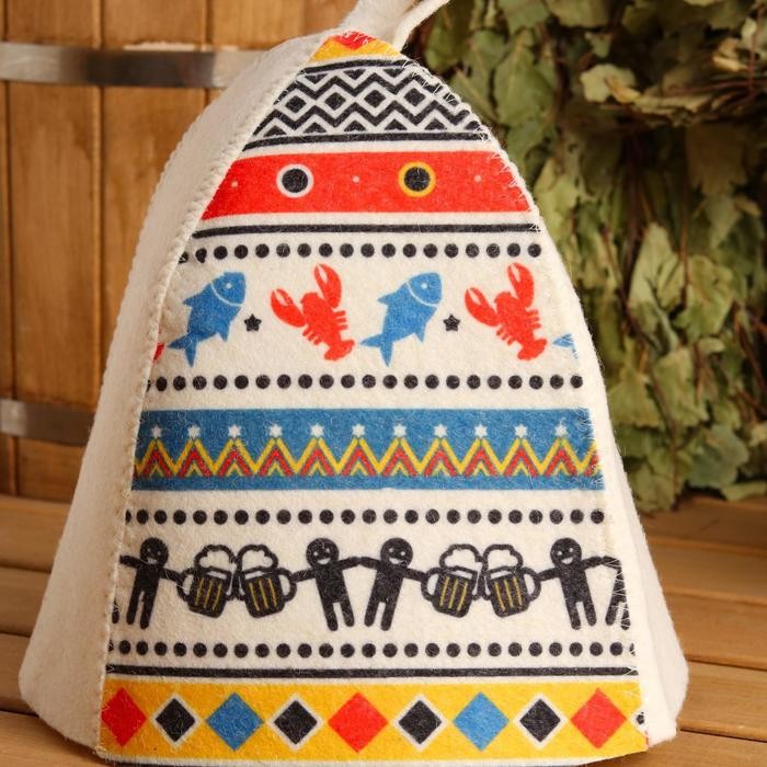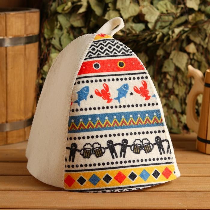 Шапка для бани «ПИВО, РАКИ», принт, фетр