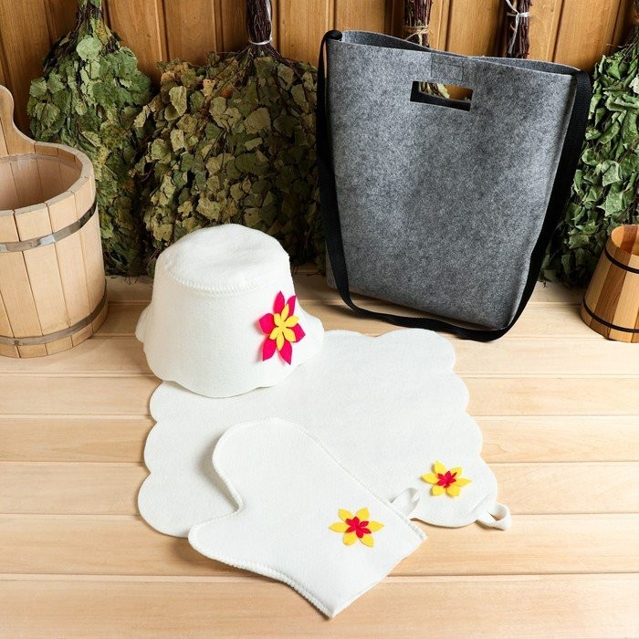 Набор для бани «Цветочек» портфель сумка красная шапка, коврик, рукавица