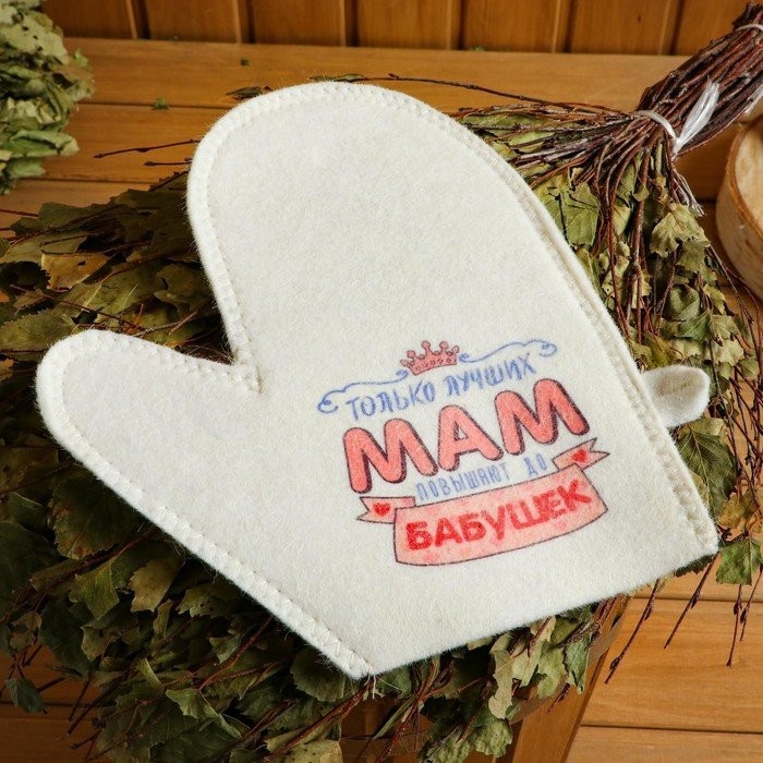 Набор для бани и сауны 5в1(сумка,шапка,варежка,коврик,мочалка),принт"Только лучших мам»,белый 543 323