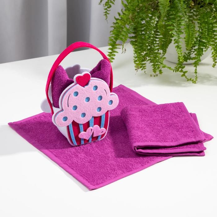 Набор полотенец в корзинке Этель «Сладкоежка» 30х30см — 2шт, цв.фуксия, 100% хл