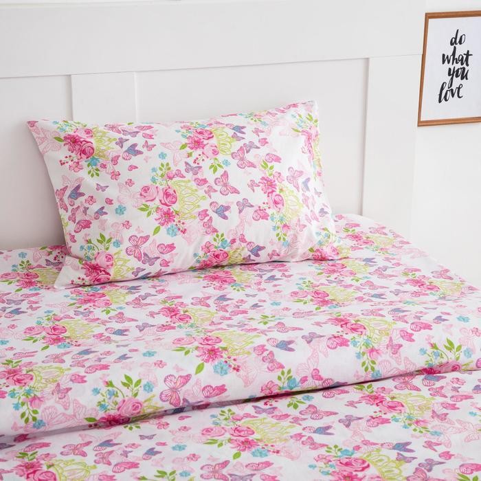Постельное бельё 1,5 сп Экономь и Я «Нежные цветочки» 145×210, 150×210, 70×70 см-1 шт