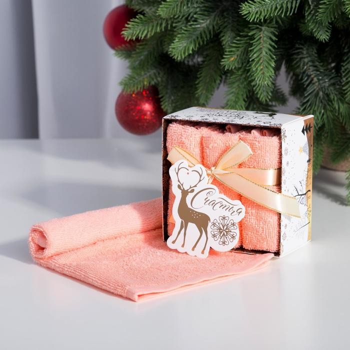 Набор махровых полотенец «Чудесного нового года» 30×30 см — 3 шт, хлопок 340гр/м2
