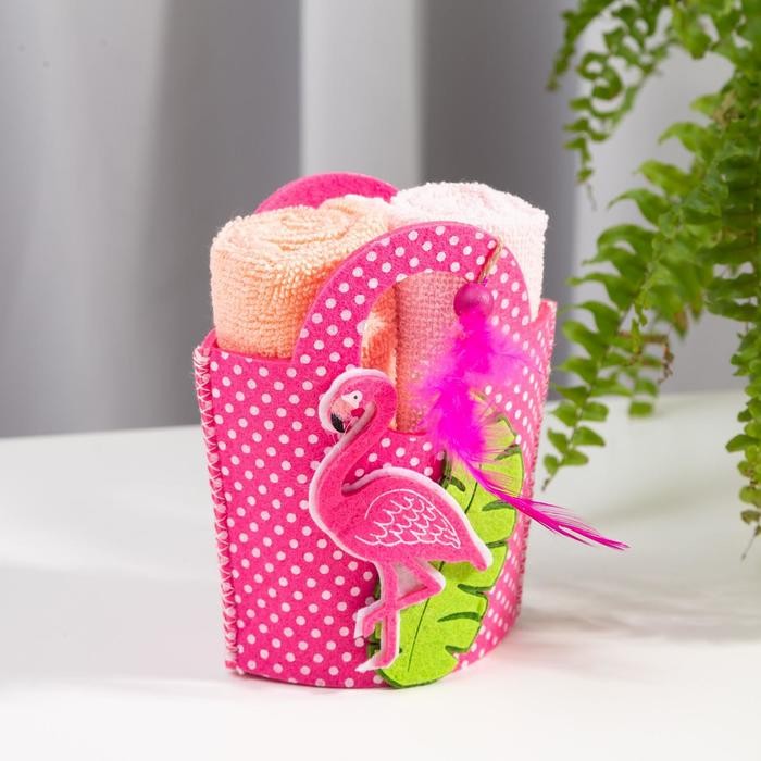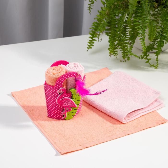 Набор полотенец в корзинке Этель «Фламинго» 30х30см — 2шт, цв.розовый/персиковый, 100% хл