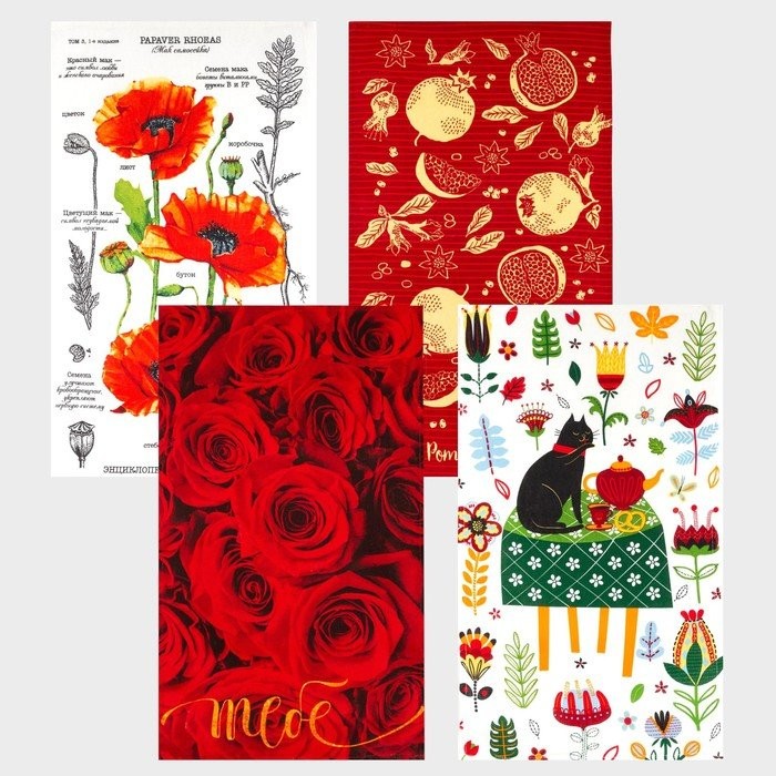 Набор кухонных полотенец Доляна «Тебе», 35х60см-4шт, 100% хл