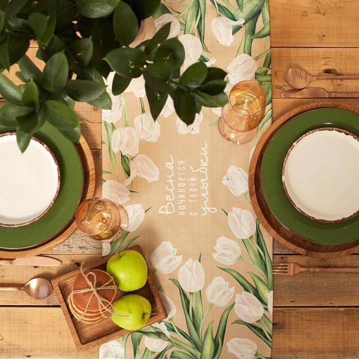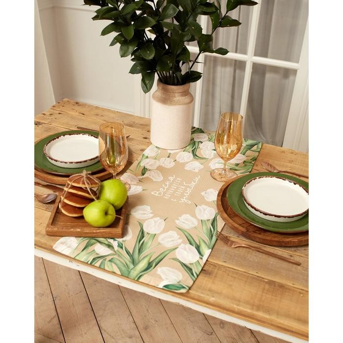 Дорожка «Этель» Белые тюльпаны 30*70 см, 100% хлопок, саржа 190 г/м2
