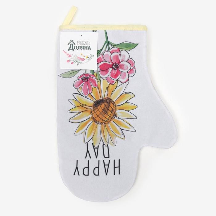 Варежка-прихватка «Доляна» Подсолнух 20х28см, габардин, 35% х/л, 65% п/э, ватин 250г/м2