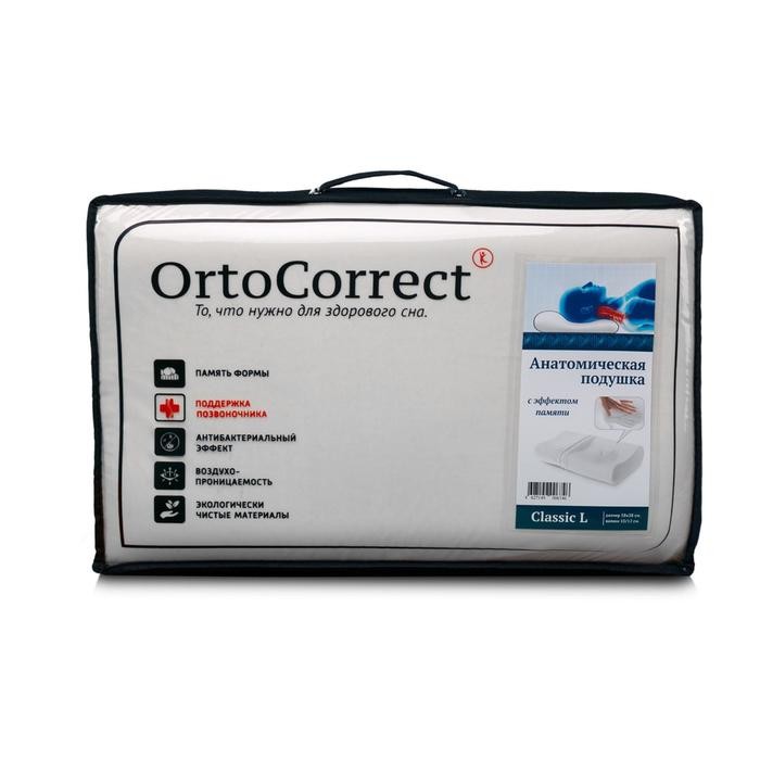 Ортопедическая подушка OrtoCorrect Classic L, 58×37 см, валики 9/11 см.