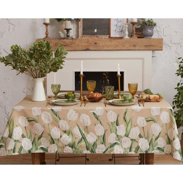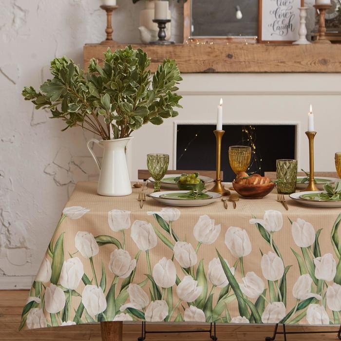 Скатерть «Этель» Белые тюльпаны 149х180см, 100% хл, саржа 190 г/м2