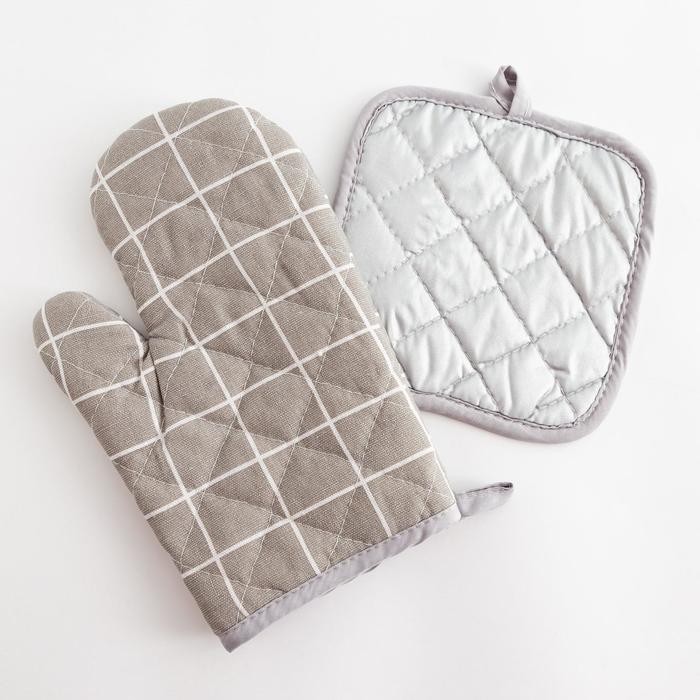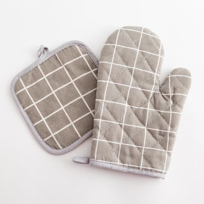 Кухонный набор Доляна «Клетка» цв.серый, прихватка 17*17 см, рукавица 26*16 см,100% п/э