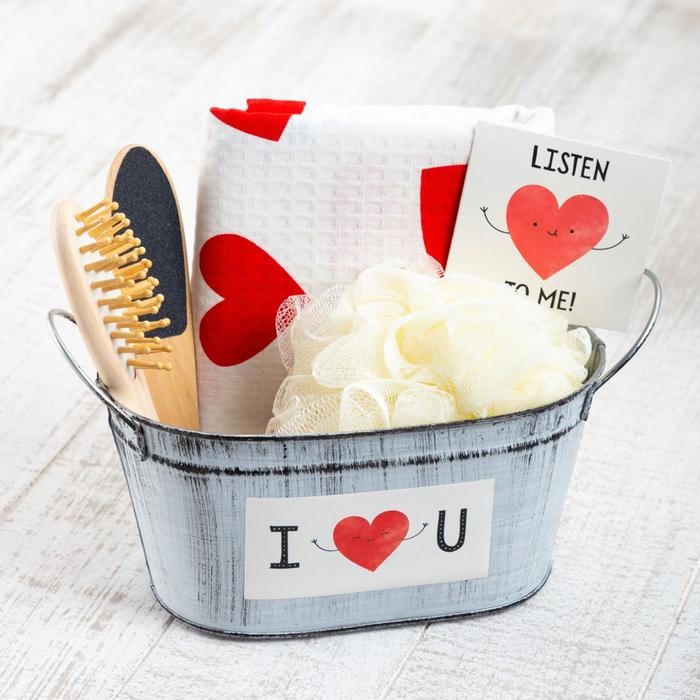Набор подарочный «Сердечки» с полотенцем (5 предметов)